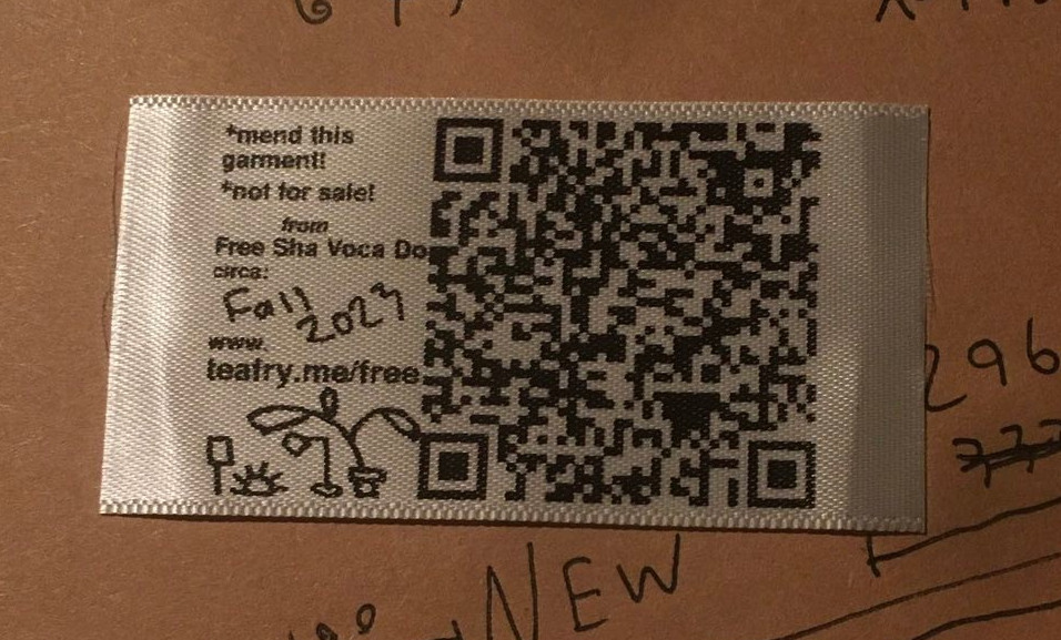 free sha voca do free store are being tagged with custo tags. It is asked that whoever takes possession of an item from the free store does not sell it for money or destroy it and in fact must mend any damage and keep it in good working order to the best of their ability. This license is intended to be perpetual for the life of the item for any future stewards. The custo tag is a reminder of this. It also indicates the item's provenance coming from the free store.