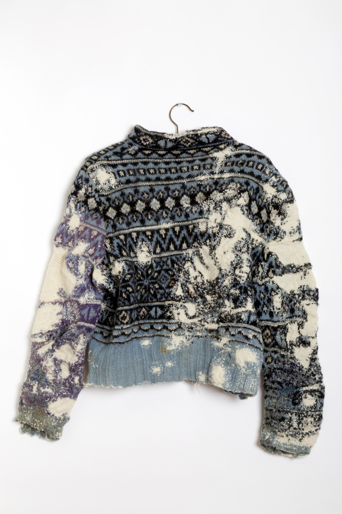 Say you're walking down the road and you see a sweater laying in the mud. Normally your gut would tell you to just leave it to rot but you pick it up. It turns out there's a tag in it. You take the sweater to the library and scan the QR code on the custo kiosk. 50 years of stories appear on-screen: photos of previous owners in foreign countries, details of times it was mended. Scrolling back you see the photos of the person who originally knit it. Suddenly this sweater feels important to return to its owner or wash and continue to record stories of.