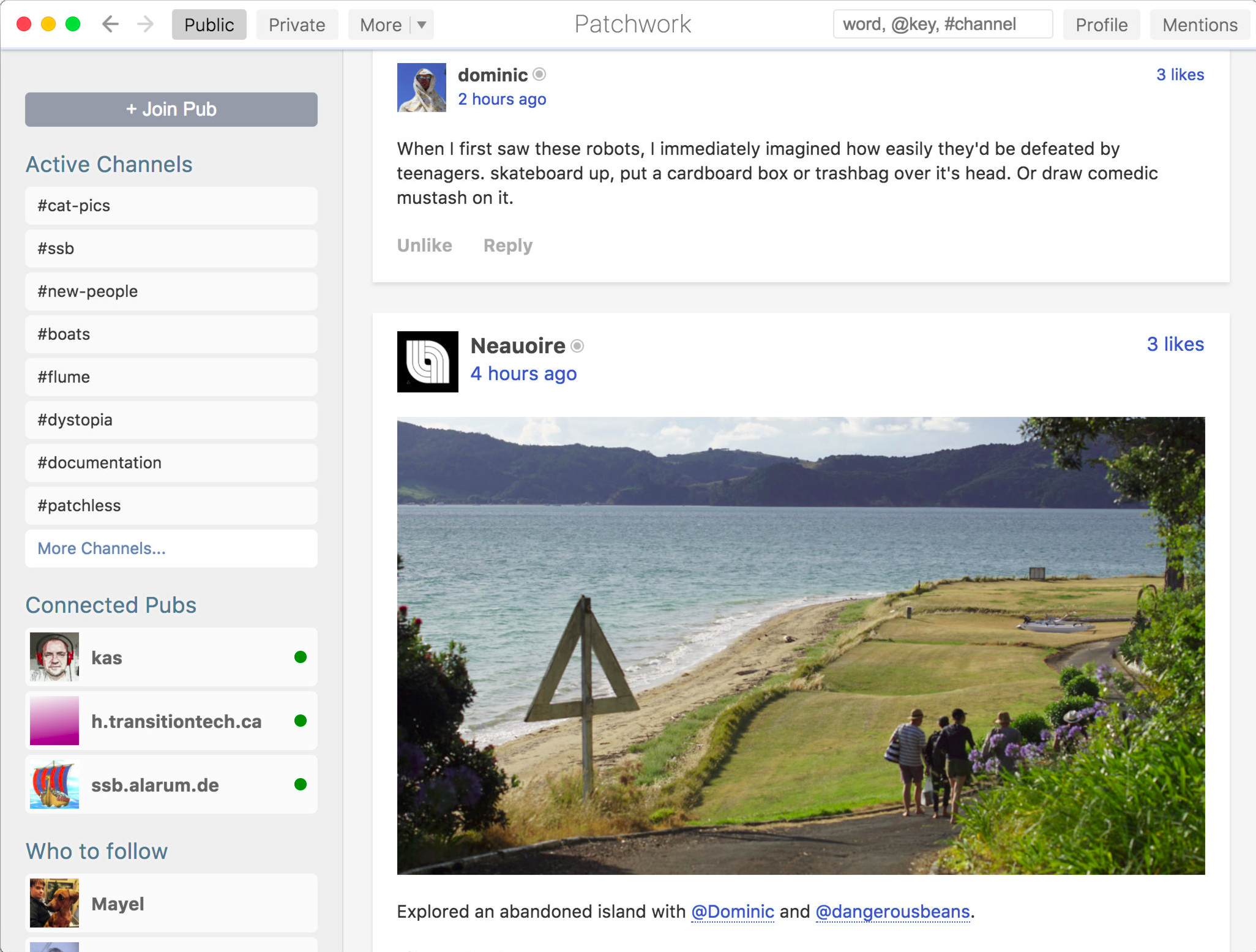 ssb-viewer which allows Scuttlebutt posts to be viewed on the web. There is technically an ssb pub behind that ssb-viewer instance but it's hops are set to 1 and it only follows Custo kiosks.
